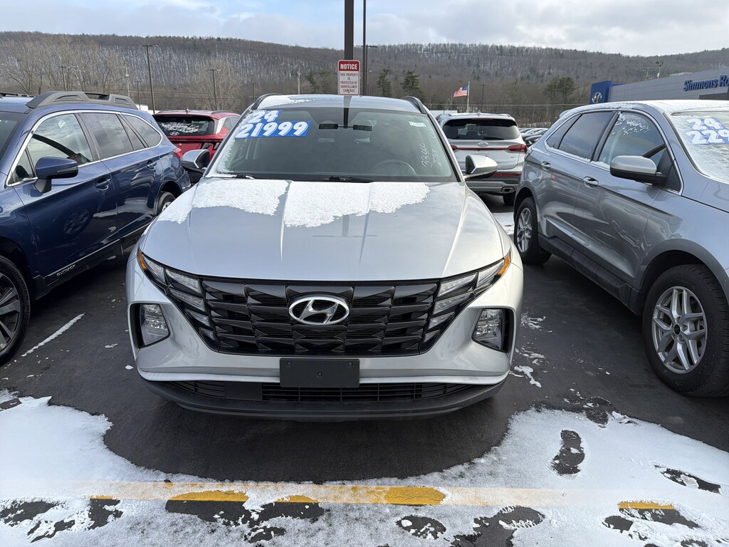 Delivers 29 Highway MPG and 23 City MPG! This Hyundai Tucson delivers a Regular Unleaded I-4 2.5 L/152 engine powering this Automatic transmission. SHIMMERING SILVER, OPTION GROUP 01 -inc: standard equipment, BLACK, STAIN & ODOR RESISTANT CLOTH SEAT TRIM.*This Hyundai Tucson Comes Equipped with These Options *Wireless Phone Connectivity, Wheels: 17" x 7.0J" Alloy, Wheels w/Silver Accents, Variable Intermittent Wipers, Valet Function, Urethane Gear Shifter Material, Turn-By-Turn Navigation Directions, Trunk/Hatch Auto-Latch, Trip Computer, Transmission: 8-Speed Automatic w/SHIFTRONIC.