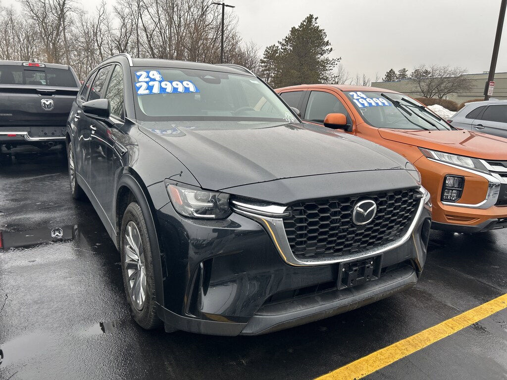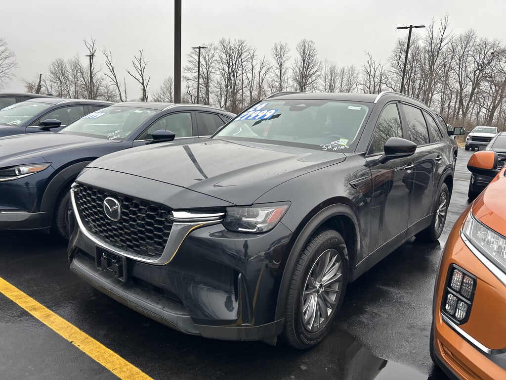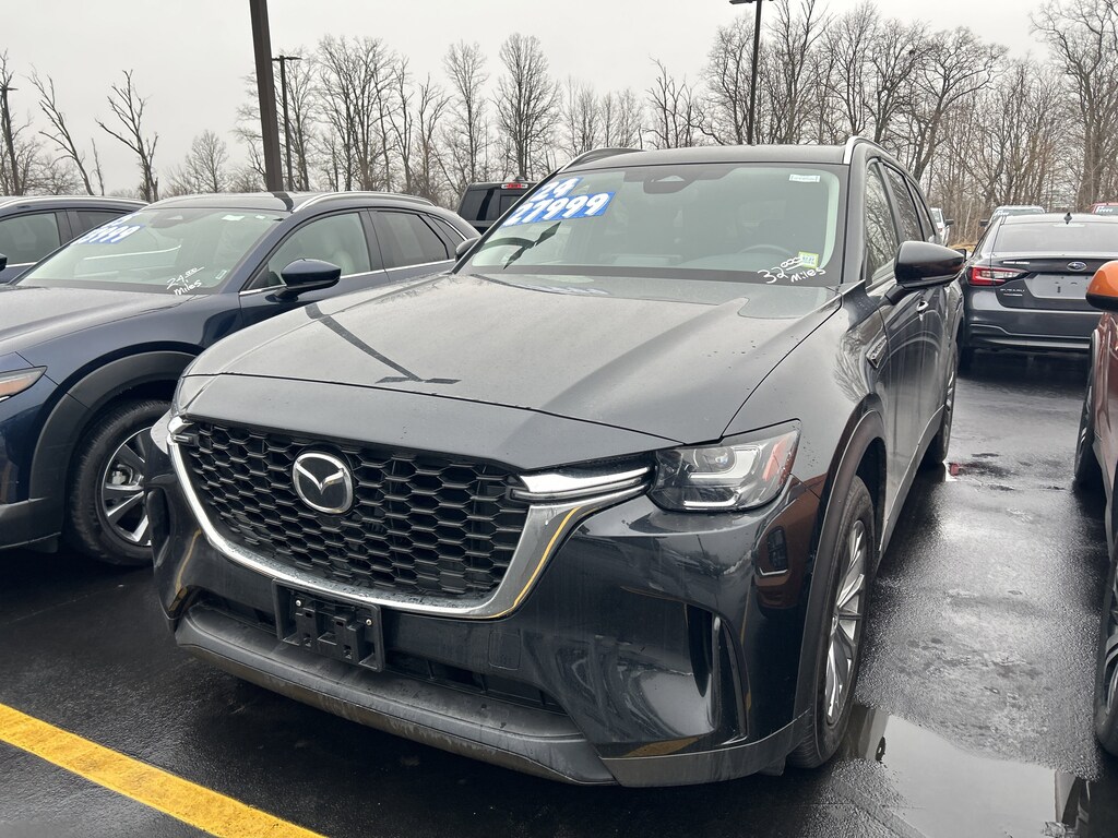 Scores 28 Highway MPG and 24 City MPG! This Mazda CX-90 delivers a Intercooled Turbo Gas/Electric I-6 3.3 L/200 engine powering this Automatic transmission. JET BLACK MICA, BLACK, LEATHERETTE SEAT TRIM, Wireless Phone Connectivity.